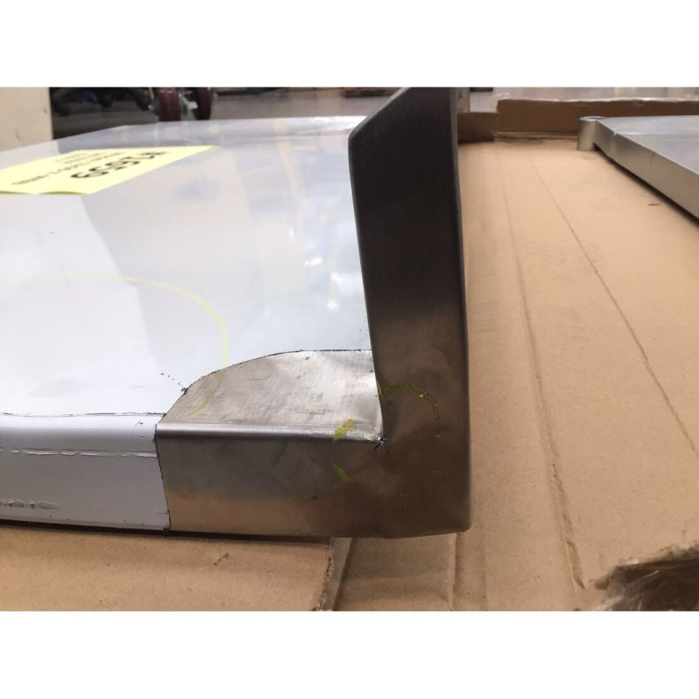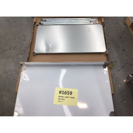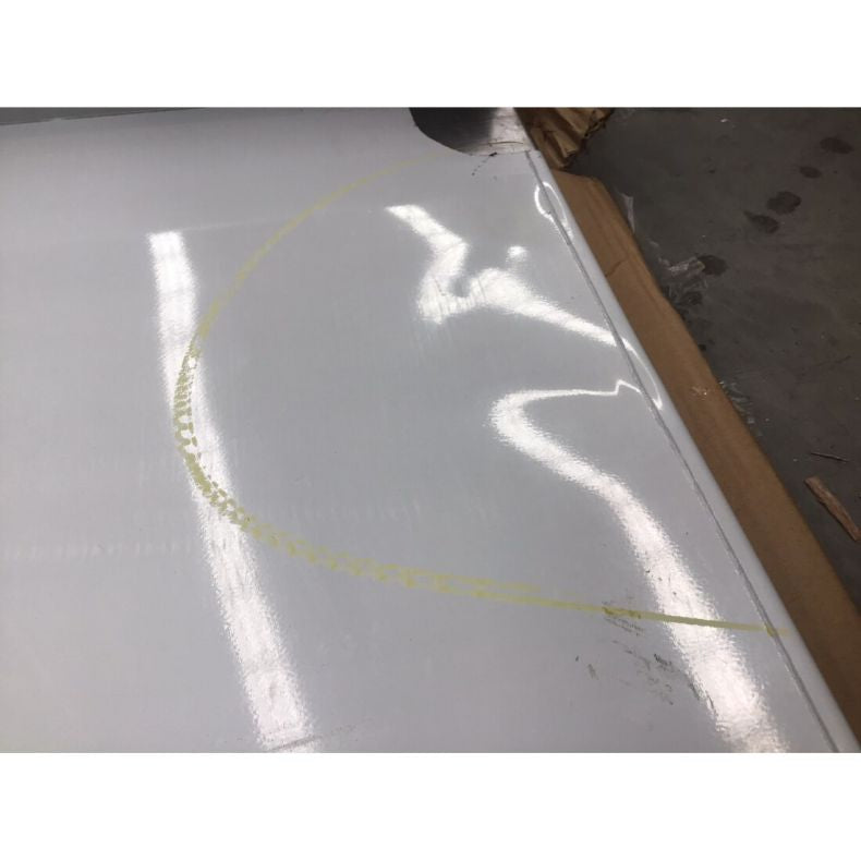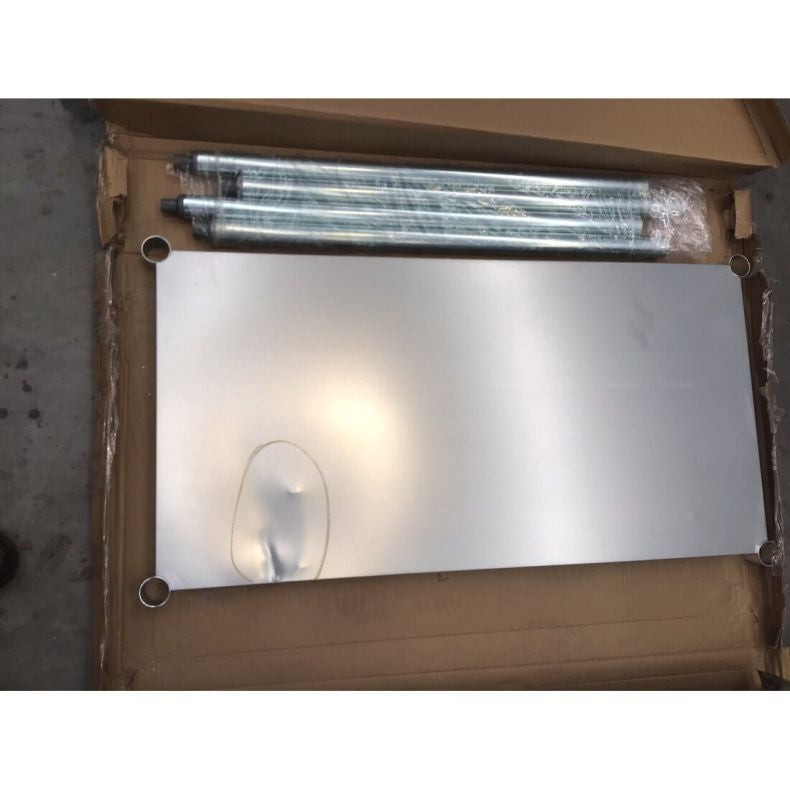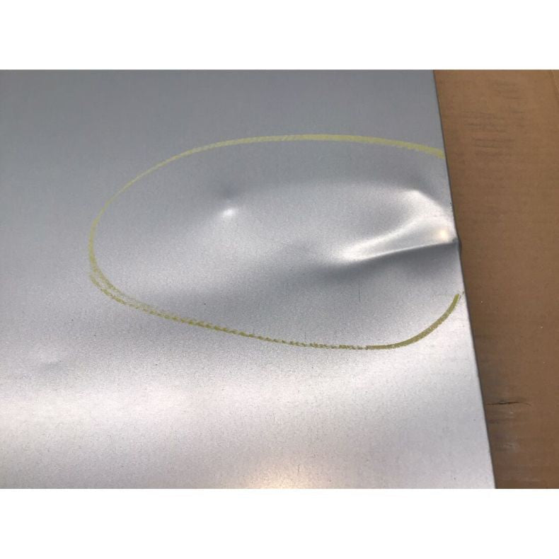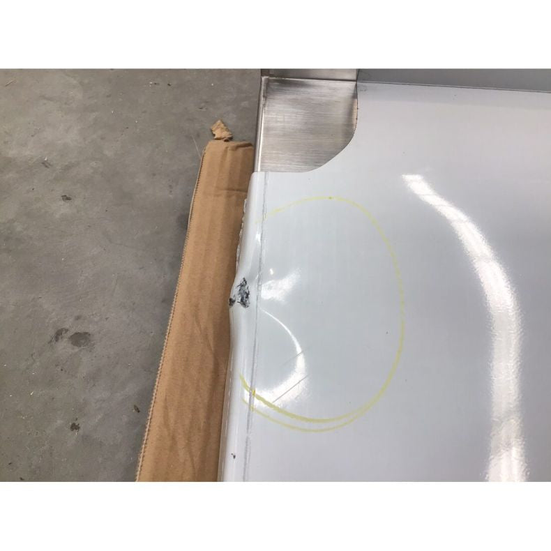 Conditions: The unused unit with the packaging benchtop is slightly deformed with a dent on the left side. The right side of the splashback is slightly bent with a small hole in the corner. The under bench has a heavy dent on one side.