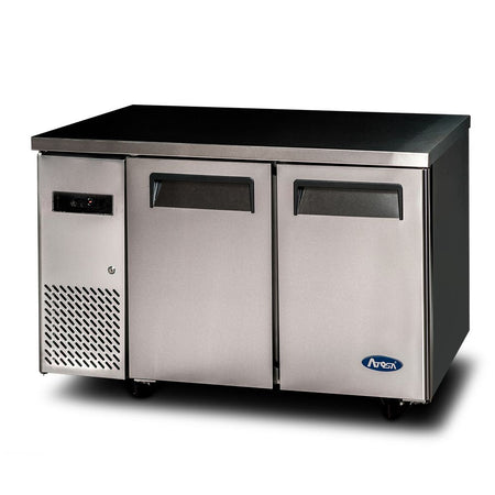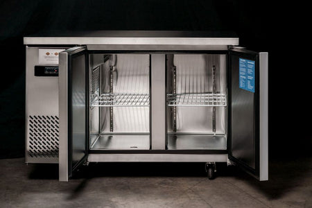 A robust and hard-wearing cooling unit, the Atosa 1.5m Refrigerator Undercounter is engineered to keep products stored at optimal temperatures in even the hottest commercial kitchens. The unit is built with a heavy-duty stainless steel interior and exterior and fitted with insulating foam, as well as fan-forced cooling by its high quality European parts including an Aspera compressor and EDM fan motor. It is equipped with a Carel or Dixell digital temperature controller and arrives with castors installed for easy mobility.