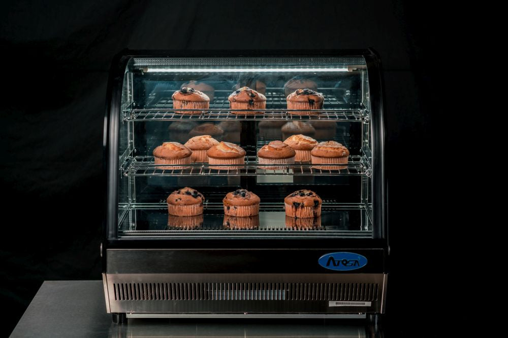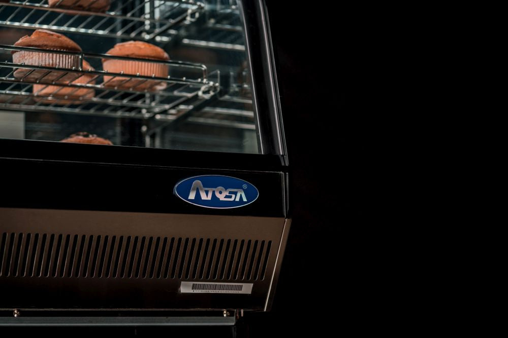 Ideal for bakeries, cafes and restaurants, the Atosa 900mm Countertop Round Cake Showcase is a compact and stylish display option designed to sit on your benchtop. It arrives equipped with stainless steel wire shelving racks, as well as LED lights for optimal visibility and to shine a spotlight on your product. Refrigerated at 2°C to 6°C, it keeps cakes cool and fresh with maximum exposure, and includes removable doors for easy cleaning and maintenance.