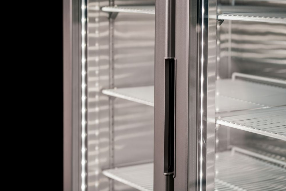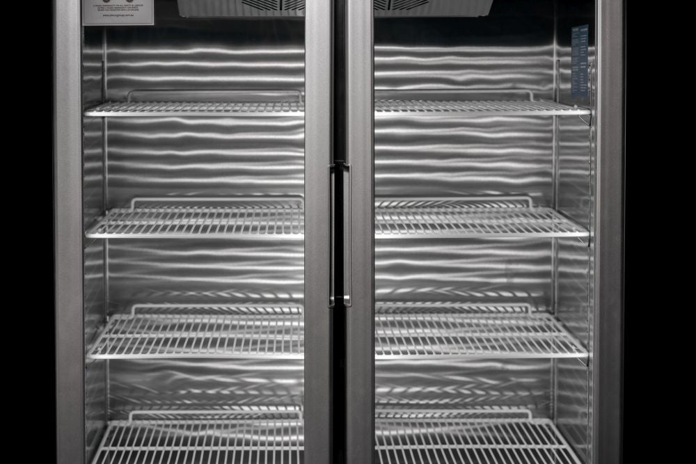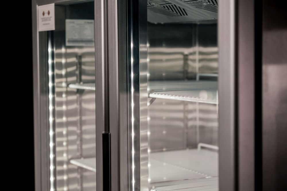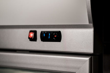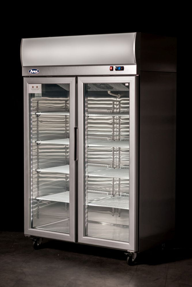 Sturdy and efficient, the Atosa Top Mounted Double Glass Door Freezer with light box is a refrigeration and display solution that is built to last. Featuring a robust exterior and interior stainless steel construction, this fridge is fitted with heavy duty Embraco compressor units, is equipped with a Dixell digital temperature control system, and arrives with pre-installed shelves and castors for ease of use and mobility. Its refrigerated cabinet sports a glass door for visibility, ideal for visual merchandising while you have peace of mind that the fan-forced cooling system keeps your products chilled no matter how hot it gets outside.
