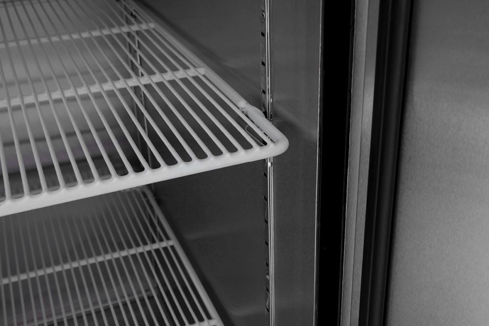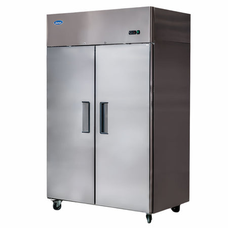 Sturdy and efficient, the Atosa Top Mounted Double Door Freezer is a well-rounded refrigeration option that is built to last. Featuring a robust exterior and interior stainless steel construction, this freezer is fitted with top mounted, heavy duty Embraco compressor units and boasts a 70kg loading capacity per shelf. The refrigeration system is equipped with a Dixell digital temperature control system and arrives with pre-installed shelves and castors for ease of use and mobility. Includes a standard safety door lock, magnetic door gaskets, rounded corners for easy cleaning, and a self-closing and stay-open door.