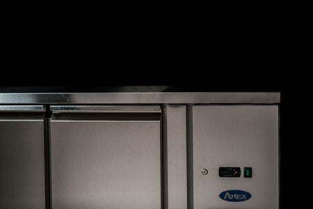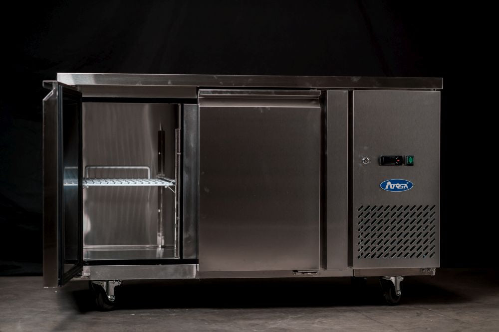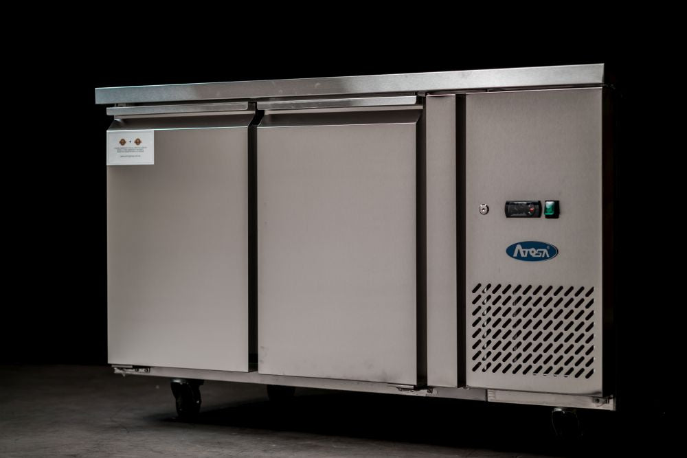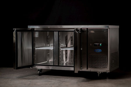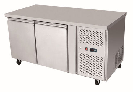 Engineered for optimal refrigeration in even the hottest kitchens, the Atosa Two Door Freezer Table is an ideal solution combining a spacious work surface with storage for frozen food products. Built with a stainless steel interior and exterior, this unit is fitted with insulation foam and ensures zero emissions. It is fitted with European-made parts including an Aspera compressor and an EDM fan motor, as well as a Carel or Dixell digital controller. Arrives complete on castor wheels for easy mobility.