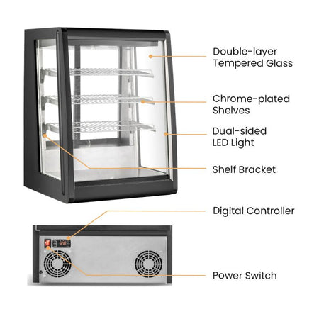 - Bright LED Lighting: Dual-sided LED lights create an attractive presentation of contents