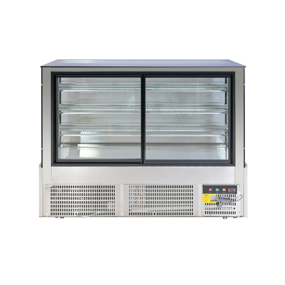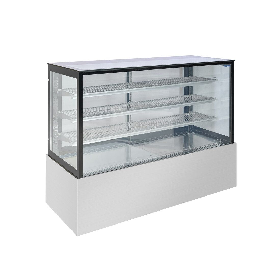 This deluxe cake display has three adjustable shelves, powerful secop compressors for functionality, a stainless-steel frame for sturdiness, LED lighting to ease interior viewing, digital temperature control and a triple glazed front with heated filaments.