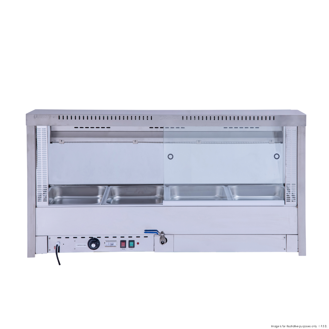 - Fits 4x 1/1GN or double row ½ GN pan (Pans not included)