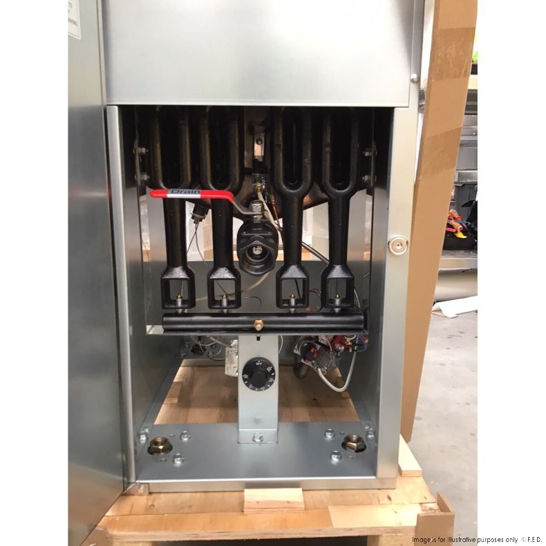Heating: · Gas: Stainless steel tube burner (two branches in OP version), with pilot flame, thermocouple, and Piezo electric ignition. · Electric: Heating via stainless steel covered elements with selector switch to control the upper and/or lower zones.