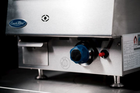 CookRite commercial gas deep fryers give consistently great results throughout service. High-quality thermostat maintains a selected temperature automatically so you can efficiently control burners to heat up quickly and then confidently maintain the required temperature. The 10-litre oil tank is easy to use and easy to clean thanks to simple access and front-facing drain tap. Finished in low maintenance, seem free, 304 stainless steel. Stable flame tube burners. Fitted with quality valves & controls. At only 400mm wide & 650mm deep, it's the ideal benchtop gas deep fryer for confined restaurant kitchens. Approved gas appliance Australia wide, both natural gas or LPG versions.