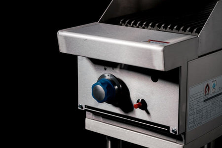 Compact commercial 1 burner radiant chargrill. The Ideal char grill for restaurants and commercial kitchens that need extra char grill space. Manually controlled independent burners, this unit gives you dependable BBQ grill space without the bulk. Easy to use and operate piezoelectric start operation with safety flame failure. Heavy-duty frame and corrosion-resistant, seam-free 304 stainless steel finish on the front, sides, and legs, easy to remove drip tray allow for quicker kitchen cleanup.