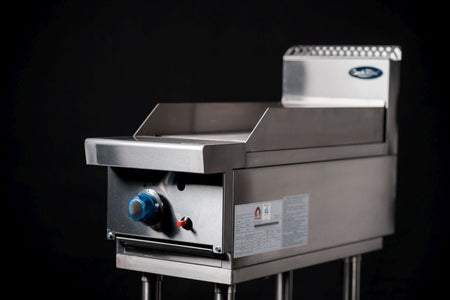 The perfect restaurant flat plate grill that delivers dependable hotplate cooking. Simple to operate piezoelectric start operation, manually-controlled with independent safety flame failure. 16mm thick hotplate matte black trivet, Heavy-duty frame & seam-free 304 stainless steel finish on the front, sides, and legs. A removable drip tray allows for quick kitchen cleanups.