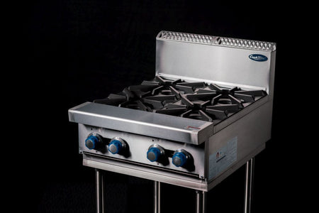 Compact commercial 4 burner stove top from CookRite by Atosa. Ideal appliance for restaurants and commercial kitchens that need extra cooking space. With 4 manually controlled (28Mj) independent burners, this unit gives you dependable stove burners for when you need help you get multiple orders out on time. Easy to use and operate manual flame start operation with safety flame failure. Includes easy to clean solid cast iron trivets which will stand up to high demand kitchens. Heavy-duty frame and corrosion-resistant, seam-free 304 stainless steel finish on the front, sides, and legs, easy to remove drip tray allow for quicker kitchen cleanup.