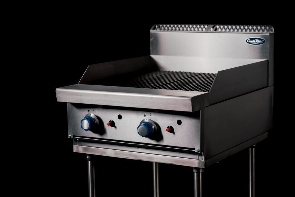 The Ideal char grill for restaurants and commercial kitchens that need extra char grill space. Manually controlled independent burners, this unit gives you dependable BBQ grill space without the bulk. Easy to start piezoelectric ignition with safety flame failure. Heavy-duty frame and corrosion-resistant, seam-free 304 stainless steel finish on the front, sides, and legs, easy to remove drip tray allow for quicker kitchen cleanup.