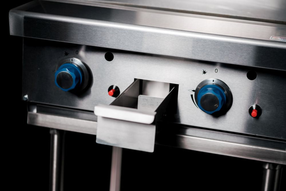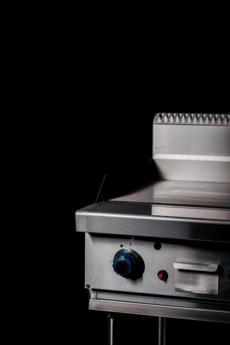 The perfect restaurant flat plate grill that delivers dependable hotplate cooking. Simple to operate piezoelectric start operation, manually-controlled with independent safety flame failure. 16mm thick hotplate matte black trivet, Heavy-duty frame & seam-free 304 stainless steel finish on the front, sides, and legs. A removable drip tray allows for quick kitchen cleanups.