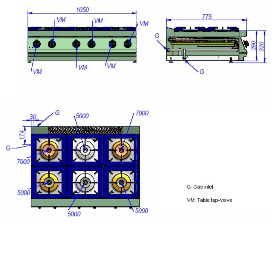 The KORE 700 range offers the most powerful burners on the market. With a maximum of 8 kW per burner, it is possible to achieve the optimum power all chefs are looking for. Moreover, the burners have been designed to guarantee the safety of the pilot light and thermocouple, protecting them from any knocks.