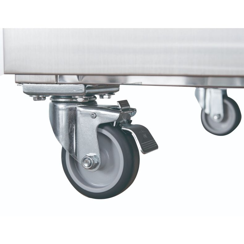 - Heavy duty castors with front wheel brakes