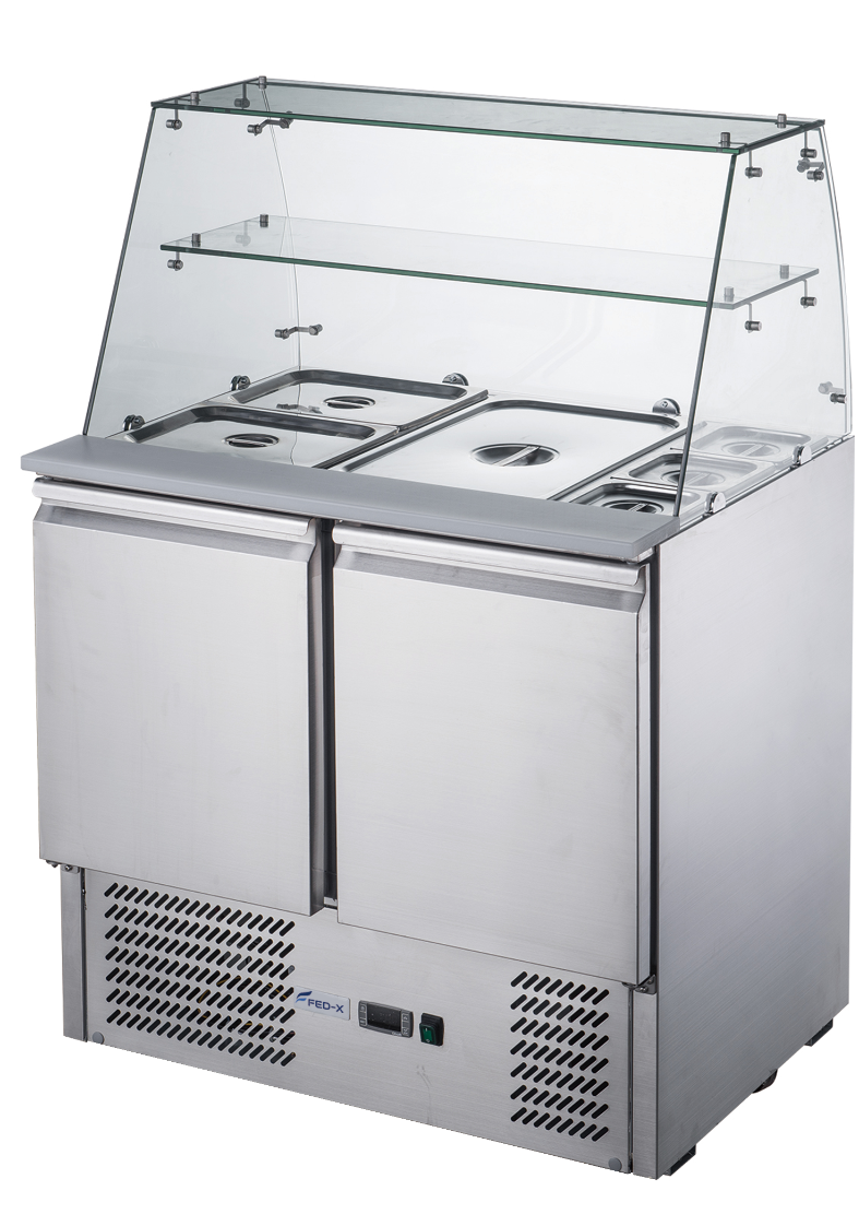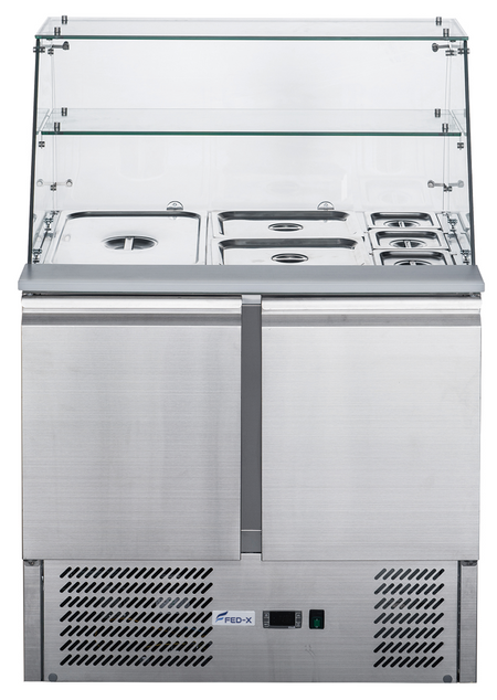 FED-X Two Door Salad Prep Fridge with Glass Top - XS900GC