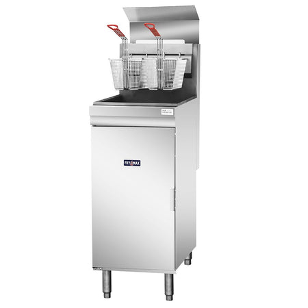 Make the perfect fried fish, chips, and much more with the powerful and reliable Frymax single tank fryer. With an impressive output, it's easy to serve large quantities of crispy fried food, ideal for restaurants, takeaways and other similar establishments. Once service has finished, cleaning is simple thanks to the robust stainless steel construction and oil drainage valve.