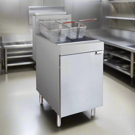 Make the perfect fried fish, chips, and much more with the powerful and reliable Frymax single tank fryer. With an impressive output, it's easy to serve large quantities of crispy fried food, ideal for restaurants, takeaways and other similar establishments. Once service has finished, cleaning is simple thanks to the robust stainless steel construction and oil drainage valve.