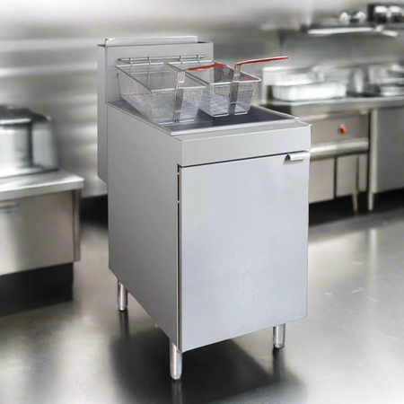 Make the perfect fried fish, chips, and much more with the powerful and reliable Frymax single tank fryer. With an impressive output, it's easy to serve large quantities of crispy fried food, ideal for restaurants, takeaways and other similar establishments. Once service has finished, cleaning is simple thanks to the robust stainless steel construction and oil drainage valve.