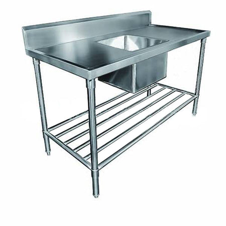 The MixRite Center Sink Bench with Splashback and is complete with a fabricated sink bowl and a splashback measuring 150mm in height. The stainless steel construction is durable and hard-wearing, tailored to continuous use and the demands of a commercial kitchen. The stainless steel tube legs arrive braced with fully adjustable feet to best suit your work environment. The sink arrives with a pre-punched 90mm waste hole, and the unit is supplied flat-packed and ready for easy assembly.