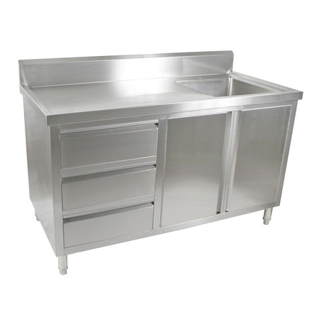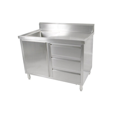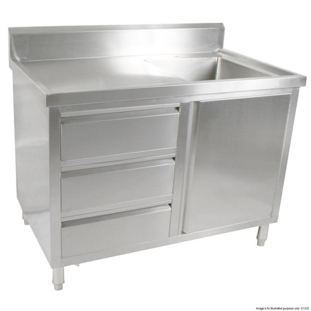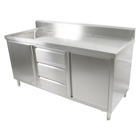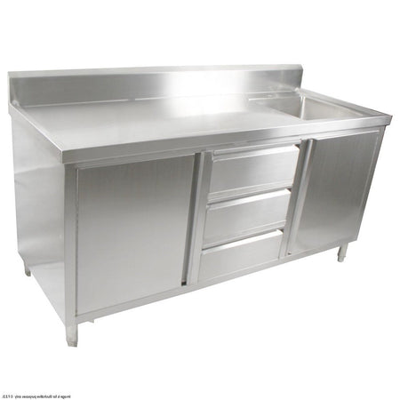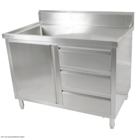 ALL STAINLESS STEEL KITCHEN TIDY CABINET WITH SINK, DOORS & DRAWERS
