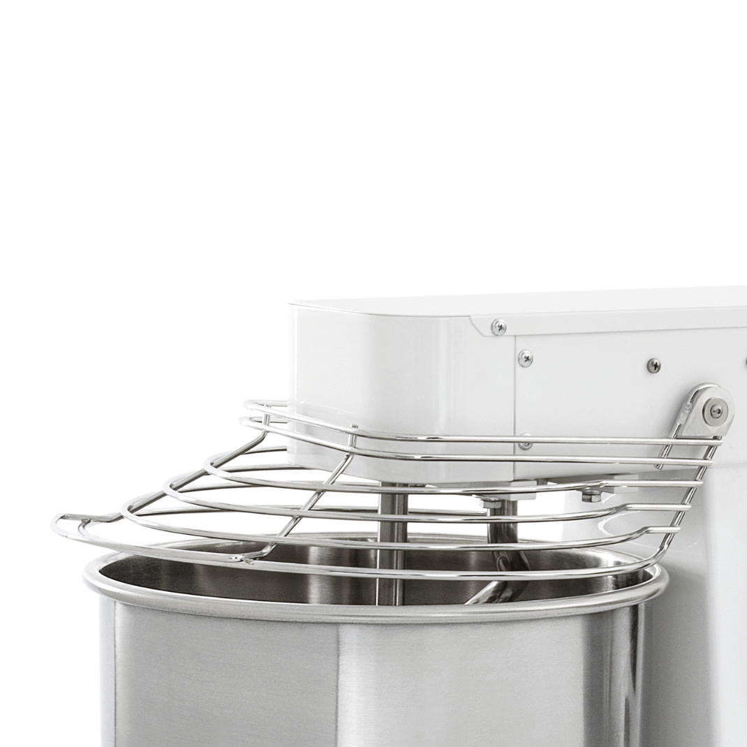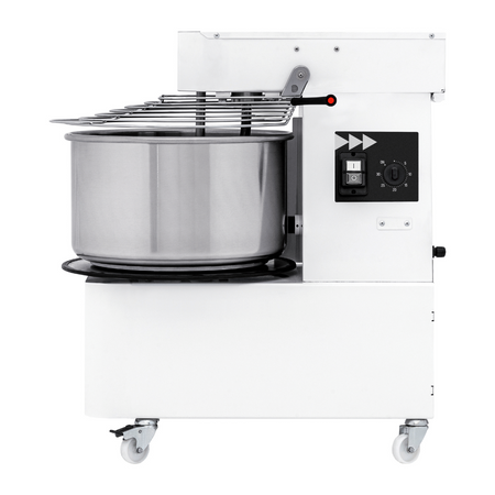 The Prismafood spiral mixer with rising top and extractable bowl is the ideal equipment for pizzerias, bakeries, and families. The particular shape of the spiral allows for obtaining a perfectly mixed dough in a few minutes. The bowl, the spiral, the central column, and the protection grid are made of stainless steel. The gearbox is made of an oil bath gearmotor.
