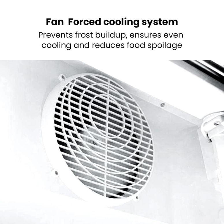 This powerful display fridge comes with a prominent decorative white color, with a large 1200-litre space for storage that aims to keep your ingredients cool and refreshed. It features five levels of strong shelving, interior LED lighting, powerful embrace compressors, digital temperature control, fan-forced evaporator cooling, self-evaporating drainage, and double-glazed doors for extra toughness and optimal viewing.