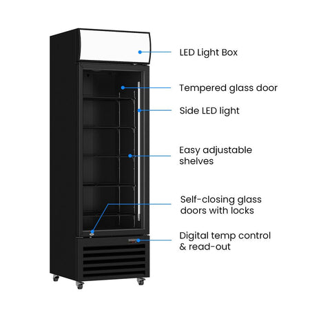 Thermaster Single Glass Door Black Colourbond Upright Drink Fridge LG-540BP