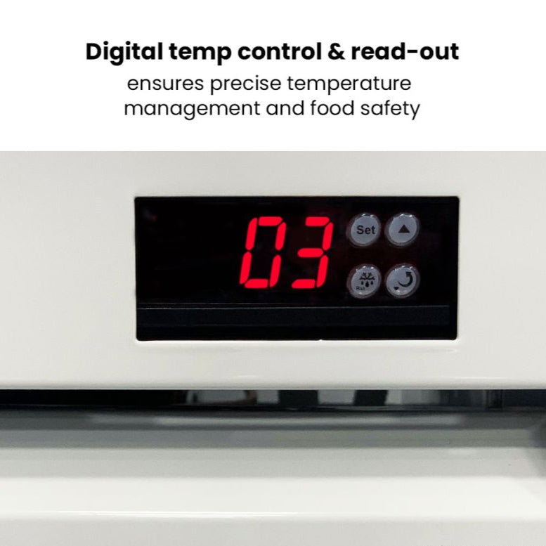 Coming in an eye-catching and fashionable design, this beverage display fridge is built with LED lighting, high cooling efficiency, low energy consumption, heavy duty castors, two layered tempered glass with an illuminated canopy and white powder coated steel plates.