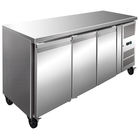 FE3100BT is a strong three-door commercial workbench freezer with multiple accompanying features. This unit can hold up to 231 L in capacity, with dimensions set at 1795x600x860+50mm.