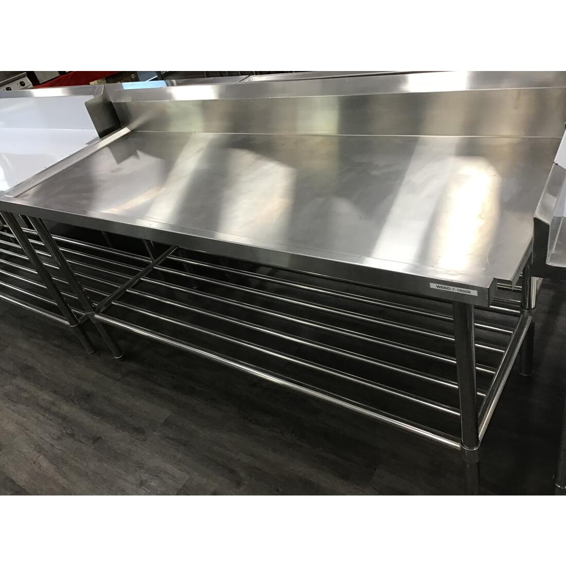 2NDs: Right Dishwasher Outlet Bench WBBD-7-1800R Lot Number: VIC154 Class: 2 Conditions: Scratches Warranty: 90 Days Key Features: • 700 mm deep × 900 mm high • Specially designed for quick & simple assembly • Come with instruction manual & tools • Supplied flat-packed for ease of transport • 4 legs per bench - 2100 & 2400 mm wide benches have 6 legs • 1.2mm material; SUS304 grade (18/8); Hairline finish Splashbacks • Stainless steel backed • 180 mm high; 30 mm thick • Bevelled • Fully enclosed Splashbacks • Stainless steel backing • All SUS304 lined & bevelled • 180 mm high; 30 mm thick • Fully enclosed & folded under top (not gal. or open) Legs 1.2 mm material; SUS304 (18/8); BA finish; 42 mm Ø • Fully adjustable SUS304 polished disc feet that match the legs perfectly • Castor kits available (lockable) Benchtops • 1.2mm material; SUS304 (18/8); Hairline finish • Lined with XPS board, 15 mm thick & SUS430 panel • Special ‘U’ channel reinforcements under; SUS304 1.2 mm thick - as the bench size increases so does the the number of channels Note: RIGHT side sink inlet bench: When facing the bench the dishwasher inlet & sinks are on the right side. Detail shown below of "right" outlet bench - dishwasher side;